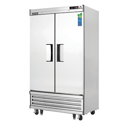 Reach-In Refrigerator, two-section, 39-3/8"W, 33.0 cu. ft. capacity, self-contained bottom mounted refrigeration, (2) narrow full-height solid hinged self-closing field reversible doors (locking), (6) epoxy coated wire shelves, height adjustable clips, digital controls with LED display, auto defrost, LED interior lighting, stainless steel interior, stainless steel front & sides, galvanized steel top, bottom & rear, (2) leg stabilizers, R290 Hydrocarbon refrigerant, 1/3 HP, 115v/60/1-ph, 3.0 amps, cord, NEMA 5-15P, NSF, cETLus, ETL-Sanitation