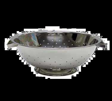 Colander, 8 quart, 13-1/2" diameter, side handles, rimmed, footed base, stainless steel, mirror finish