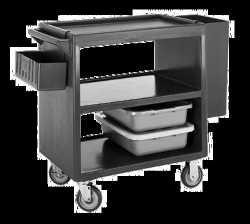Service Cart, open design, (3) shelves, shelf size approximately 21" x 32", polyethylene exterior, 5" casters (4 swivel, 1 with brake), 500 lb. load capacity, charcoal gray, NSF