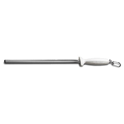 Sani-Safe® (07603) Diamond Sharpener, 10", with electroplated diamond dust and swivel ring, hone as well as sharpen, non-slip, white, polypropylene handle