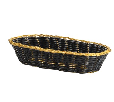Basket, 9" x 4" x 2", oblong, black vinyl w/gold metal trim