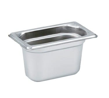 Super Pan 3® Ninth Size Food Pan, 4" deep, 100mm, 22 gauge 300 series stainless steel, top flange corners with concave indentation, Anti-Jamming, reverse form flattened edge, framing shoulder, interchangeable with SP3 plastic pan line, NSF, meets gastronorm (EN 631-1) standard, USA