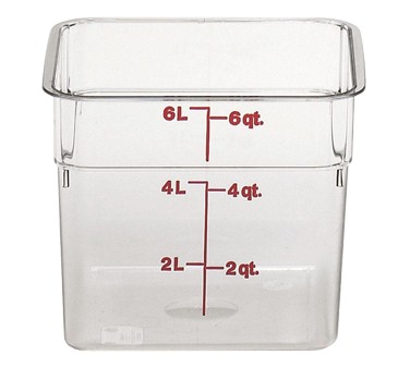 CamSquare® Food Container, 6 qt, 8-3/8" x 8-3/8" x 7-1/4", clear, orange graduation, polycarbonate, dishwasher safe, resists stains & odors, NSF listed