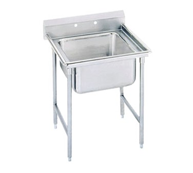 Regaline Sink, one compartment, 20" front-to-back x 16" W compartment, 12" deep, with 8" high splash, galvanized open frame base w/ side crossrails, 16/304 stainless steel, overall 27" F/B x 25" L/R