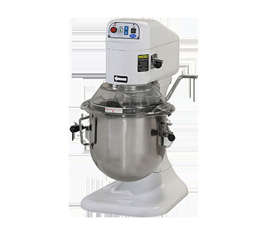 Planetary Mixer, 8 qt., countertop model, 3-speed (fixed), gear-driven transmission, front-mounted touchpad controls with 15-minute digital timer, safety interlocked bowl lift, thermal overload protection, includes: polycarbonate bowl guard with chute, stainless steel bowl & whip, aluminum beater & spiral dough hook, cast aluminum body, 1/4 HP, 115v/60/1-ph, 5.0 amps, cord, NEMA 5-15P, NSF, cETLus