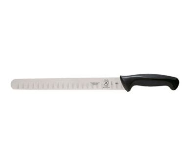 Millennia Slicer Knife, 11", granton edge, stamped, high carbon, stain-free steel, black non-slip Santoprene® & polypropylene handle, with textured finger points and protective finger guard, NSF certified
