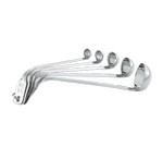 Six-Piece Oval Measuring Spoon Set, 18-8 s/s, unique oval bowl design, capacities stamped on product, set secured with s/s ring, includes (1) Tbsp (15 ml), (2) tsp (10 ml), (1) tsp (5 ml), 1/2 tsp (2.5 ml), 1/4 tsp (1.25 ml), 1/8 tsp (.625 ml), Imported